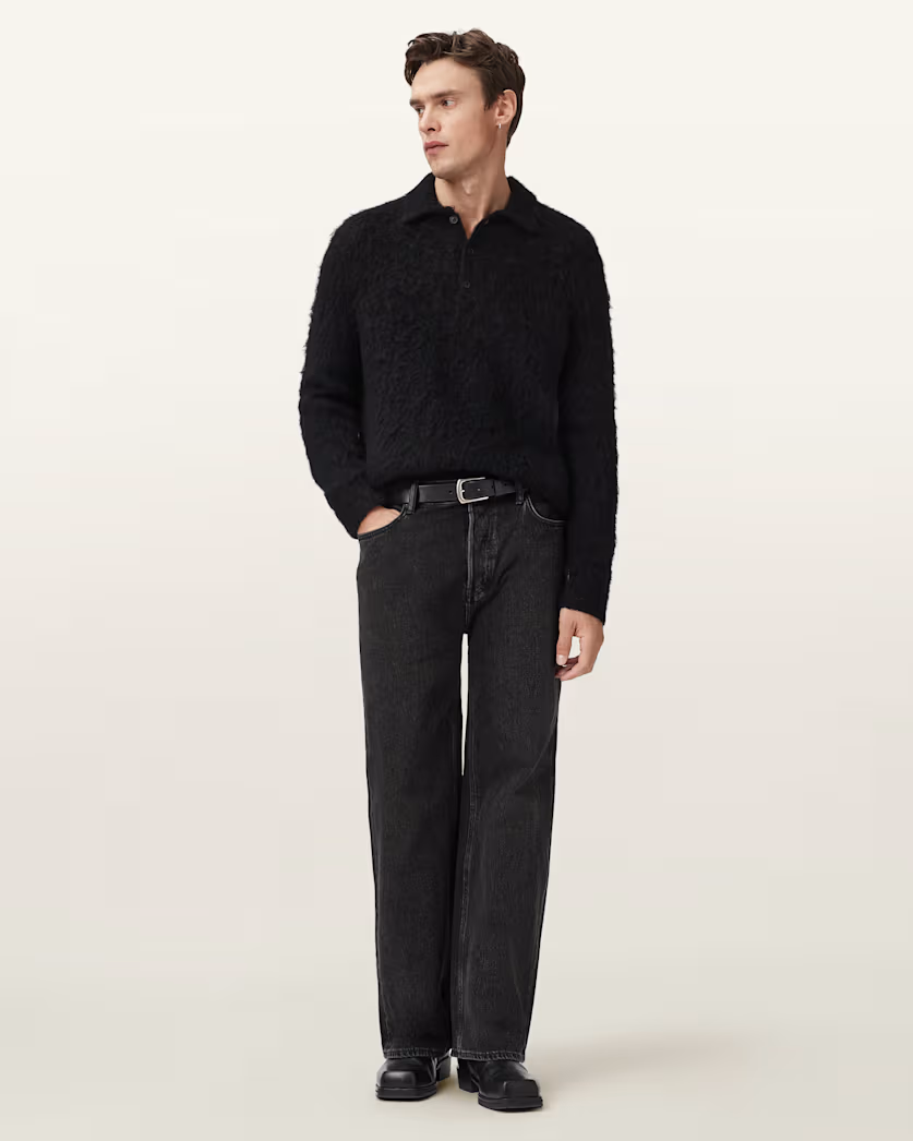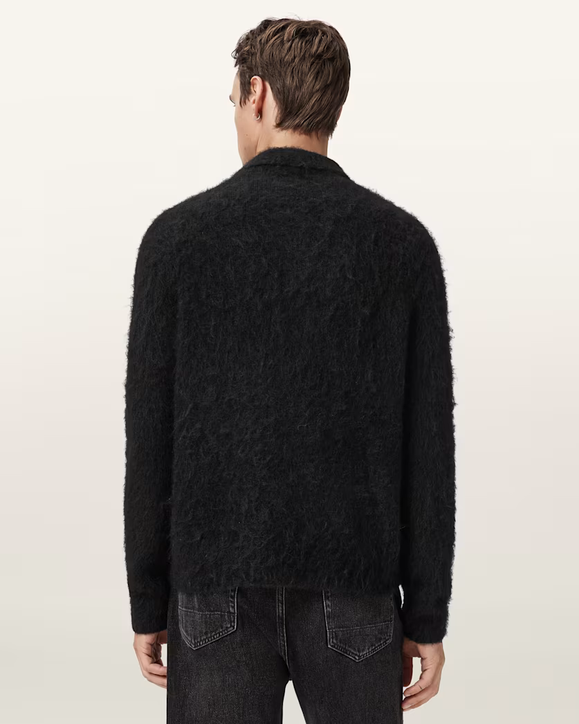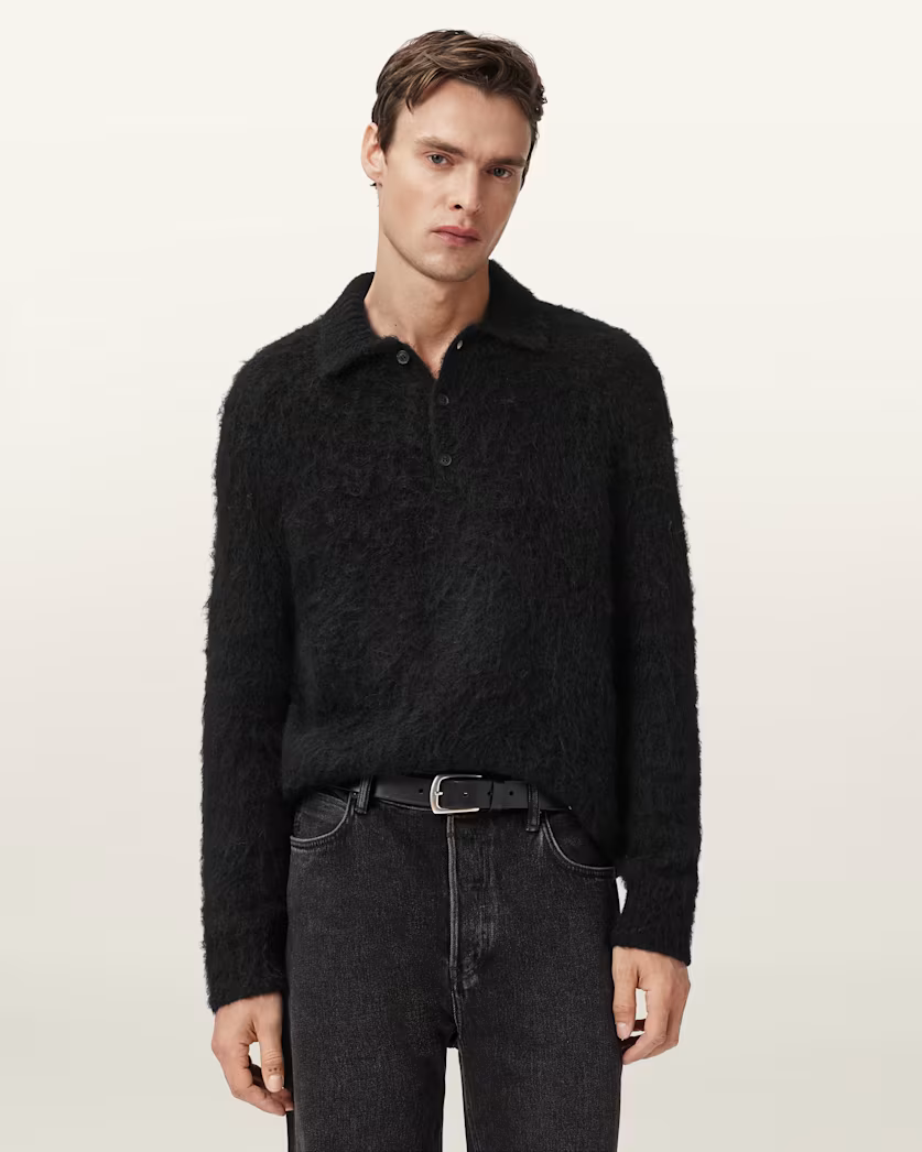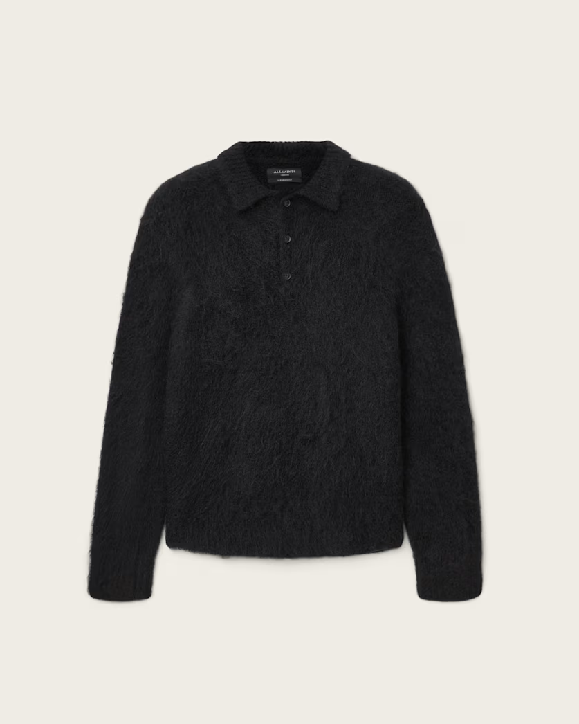 חולצת פולו לנשים מבית המותג אולסיינטס. בגזרה קלאסית רגילה, עם צווארון פולו, שרוולים ארוכים, במרקם שעיר פרוותי.