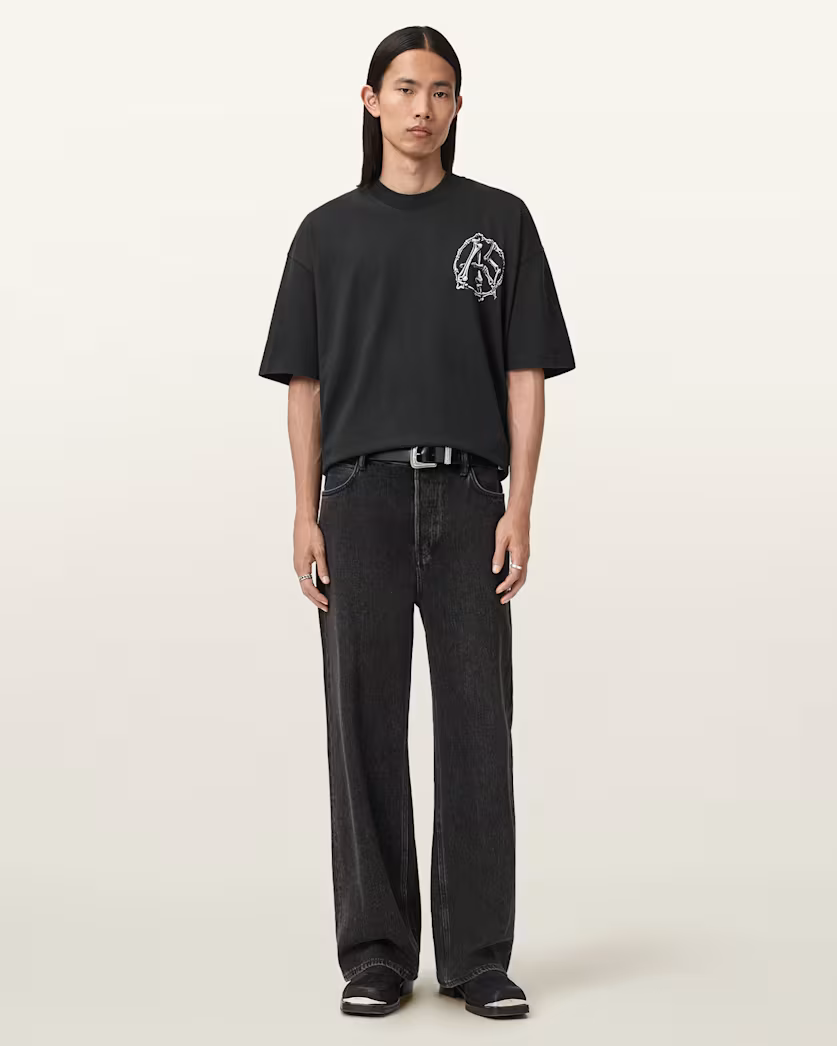 טי שירט קצרה לגברים מבית המותג אולסיינטס. בגזרת אוברסייז, עם מפתח עגול, שרוולים קצרים, בשילוב לוגו המותג מאויר בצד החזה והדפס גדול בגב.